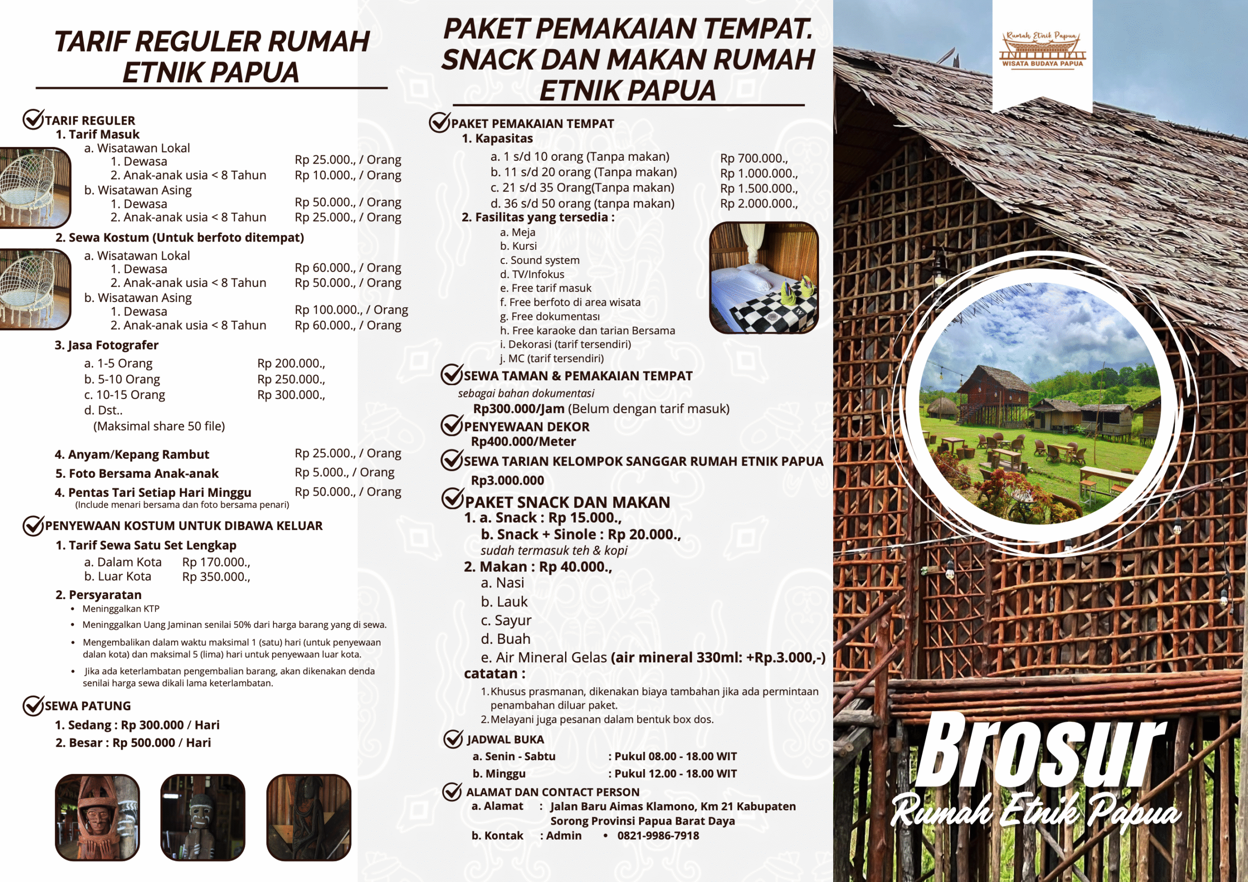 Panduan lengkap tarif tiket masuk, sewa kostum adat, paket edukasi, dan reservasi homestay untuk pengalaman budaya terbaik di Sorong.